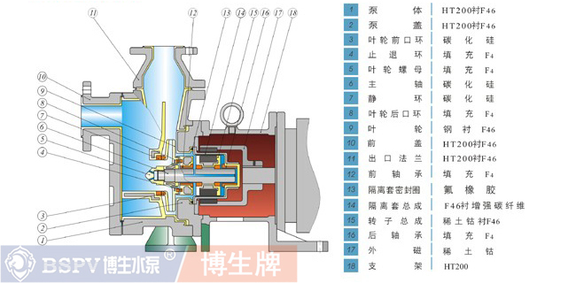 ZMD氟塑料自吸式磁力泵為公司推出新一代耐腐蝕自吸磁力泵,它不但集氟塑料磁力泵的優(yōu)點于一身,而且大的功能是可以自吸、無泄漏,這是以往的所有氟塑料磁力泵不能達到的。該系列泵可廣泛適用于化工、有色金屬冶煉、農(nóng)藥、制酸制堿、造紙、酸洗工藝、稀土分離、電鍍、電子、化成箔、卸酸堿等行業(yè)或工作流程,是目前磁力泵品種中結(jié)構(gòu)新穎的產(chǎn)品之一,且高效節(jié)能、**實用。 該泵的適用溫度:-20°C-100°C。ZMD氟塑料磁力泵采用電機直聯(lián)式結(jié)構(gòu),由中間支架支撐,結(jié)構(gòu)緊湊,拆卸維護方便,采用高性能磁性材料“釹鐵硼”制造內(nèi)外磁體,隔離套采用進口非金屬材料, 徹底消除了一般磁力泵具有的磁渦流損耗,可輸送高濃度,密度大于1.84t/m3的強腐蝕介質(zhì);主要部件采用鋼襯F46,泵體強度高,能耐所有強酸,強堿的腐蝕; 產(chǎn)品充分結(jié)合了磁力泵與自吸泵的優(yōu)點,是在IMD磁力泵的基礎(chǔ)上延伸開發(fā)出來的產(chǎn)品,突出的特點是既具有自吸泵的自吸功能又有磁力泵的無泄漏、運轉(zhuǎn)寧靜的優(yōu)點,是液下泵好的替代產(chǎn)品。特別適合于輸送易燃、易爆、有毒、有揮發(fā)性及貴重介質(zhì)?,F(xiàn)已批量投放市場,在很多項目上替代了進口磁力泵。ZMD氟塑料磁力泵廣泛適用于石油化工、有色金屬冶煉農(nóng)藥、制酸制堿、造紙、酸洗工藝、稀土分離、電鍍、電子,化成箔等行業(yè)吸取輸送低于泵安裝位置以下的腐蝕性液體。