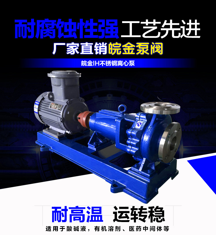 IH型化工泵是單級單吸懸臂式離心泵,其標(biāo)記額定性能點和尺寸等效采用國際標(biāo)準(zhǔn)ISO2858-1975(E),是一種用以取代F型耐腐蝕泵更新?lián)Q代的節(jié)能產(chǎn)品,適用于化工、石油、冶金、電站、食品、制藥、合成纖維等部門輸送溫度在-20℃~105℃的腐蝕性介質(zhì)或物理、化學(xué)性能類似于水的介質(zhì)。